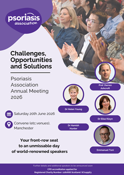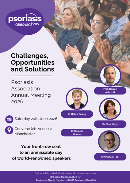 The Psoriasis Association are pleased to announce the date and location for our Annual Conference and Annual General Meeting, which will take place on Saturday 20 June 2026 at Convene (etc Venues), 11 Portland Street, Manchester, M1 3HU.