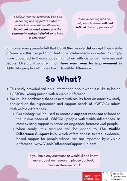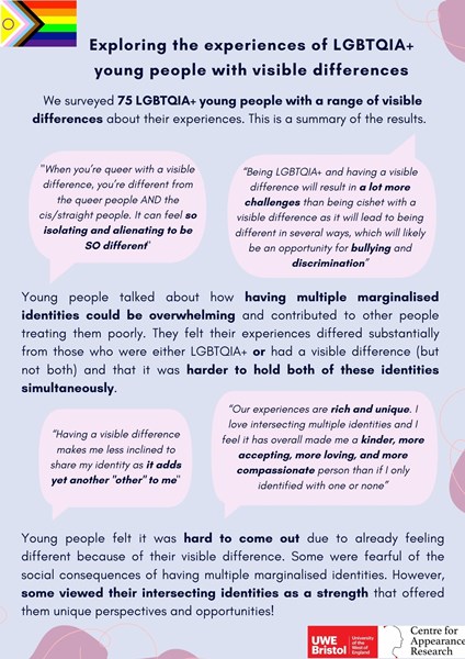 Following a recently conducted study into LGBTQIA+ young people with visible differences, The Centre for Appearance Research has now shared a summary of its findings.