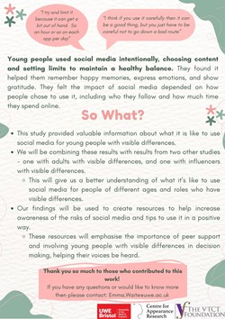 - This study provided valuable information about what it is like to use social media for young people with visible differences.